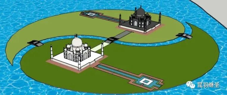 泰姬陵的布局如下,从泰姬(Taj)到太极,从黑到白,阴阳相生,难道真的仅仅只是巧合?