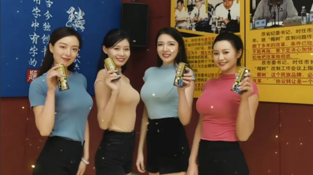 这不又走起了网红路线,请来了几个网红小姐姐打广告做直播带货,很多人都夸老总眼光好,会选人,个个不仅身材苗条,一看这效果就知道了,肯定是从小喝椰汁到大的!