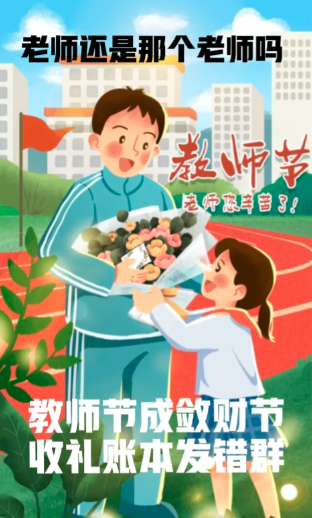 我们的教育成了盈利系统,我们的老师成了势利眼,我们的节日成了敛财的机会。可悲可叹,都说年轻人不要孩子,教育不公平啊,资源倾斜,爱心有价,教师节让爹妈胆颤心惊,自己不舍得吃不舍得喝,都给老师送去,还被老师记账标注,心寒啊,这还是那个教书育人的老师吗?