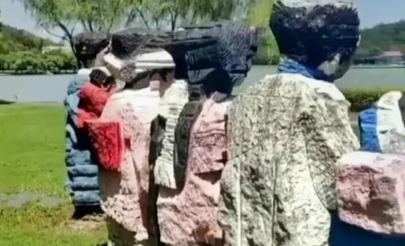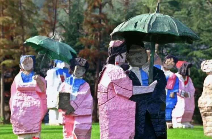 对此网友质疑:“为何要在公园树立这些粗制滥造?既不美观也不符合情感。”这里为什么会出现日本和服的雕像群呢?它们是怎么进去的?谁同意的呢?