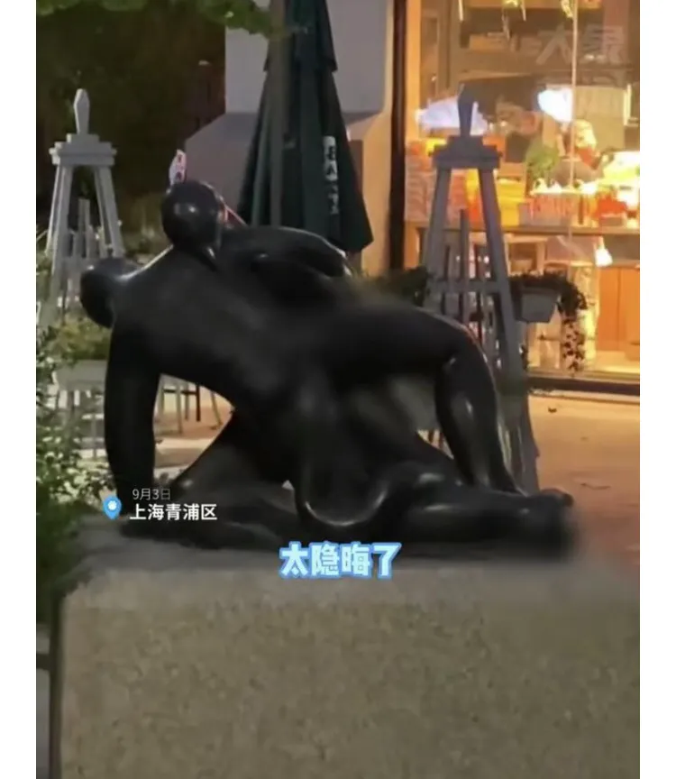 近日,上海一男子户外出行是时,在青浦网红小镇商业休闲区看到了几个雕像,每个怪异的动作勾起了他的兴趣。走到雕像前,整个人瞬间脸红。