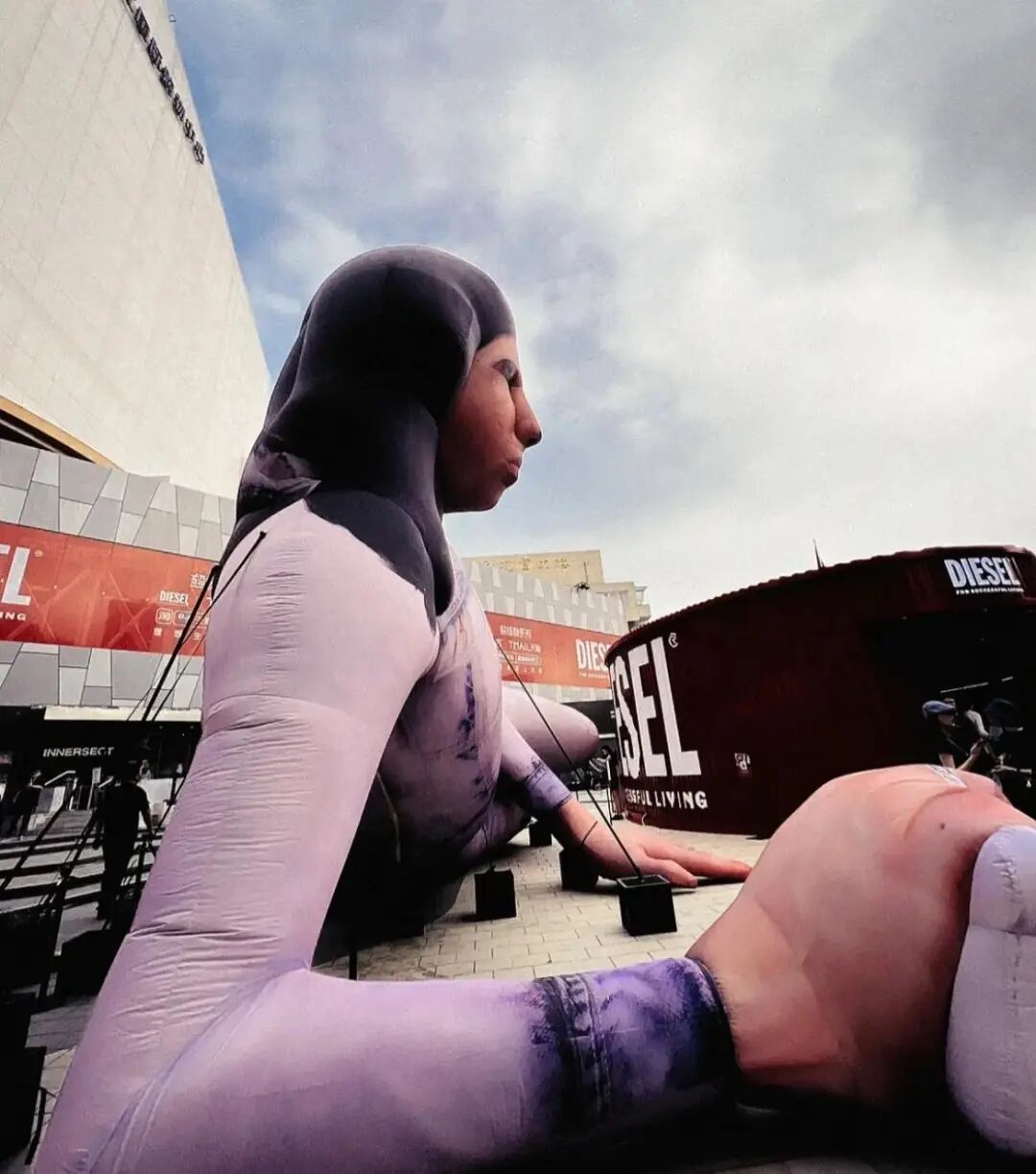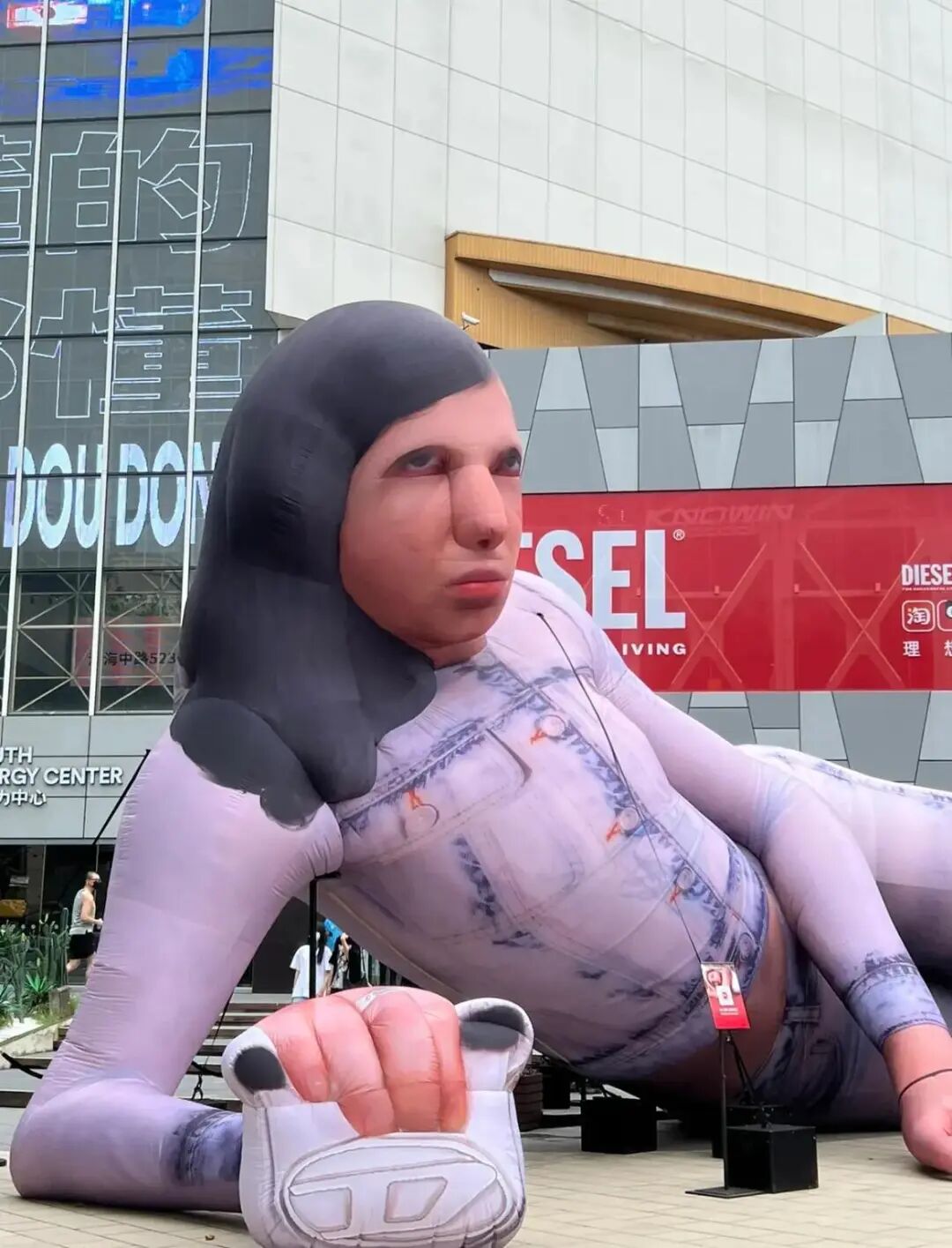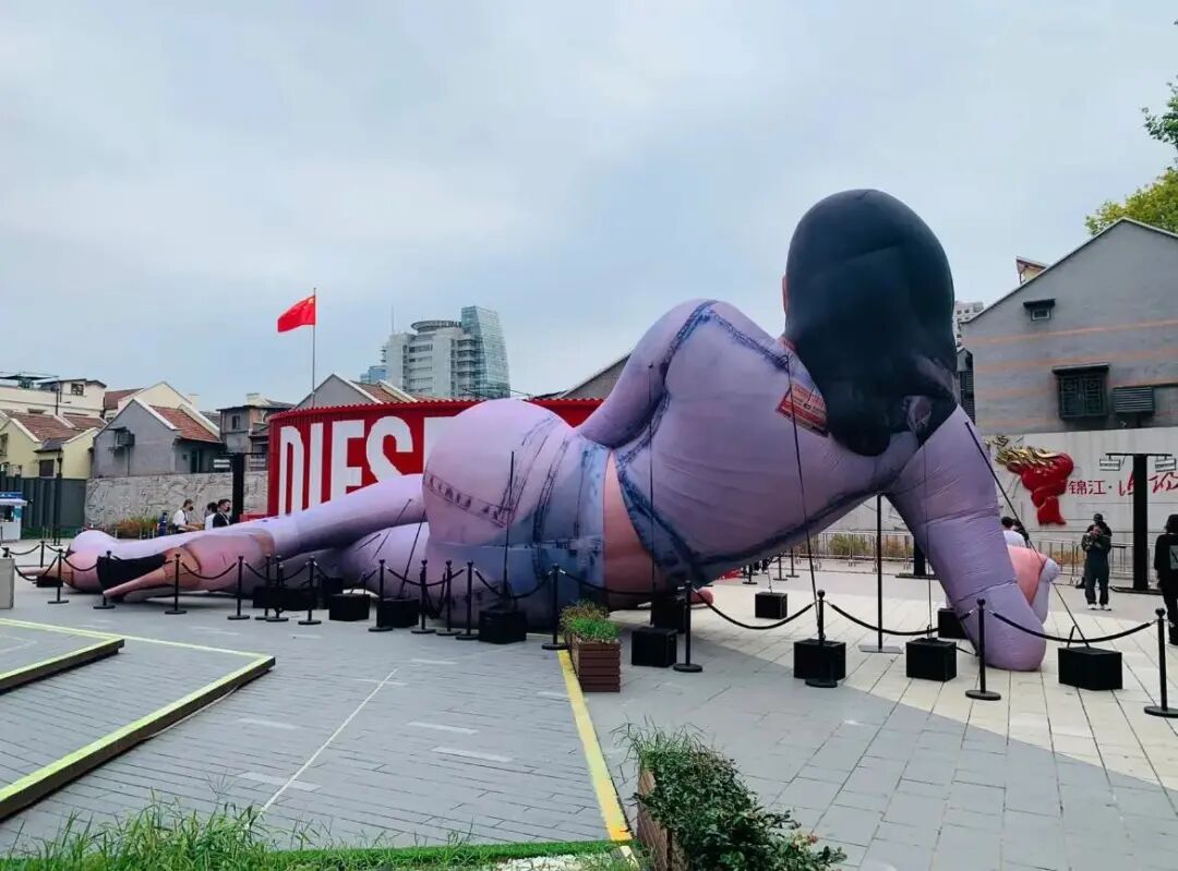 近日,意大利牛仔时装品牌DIESEL,在上海淮海路TX门口支起了一个巨型充气人偶装置,成为“淮海路上最靓的仔”。