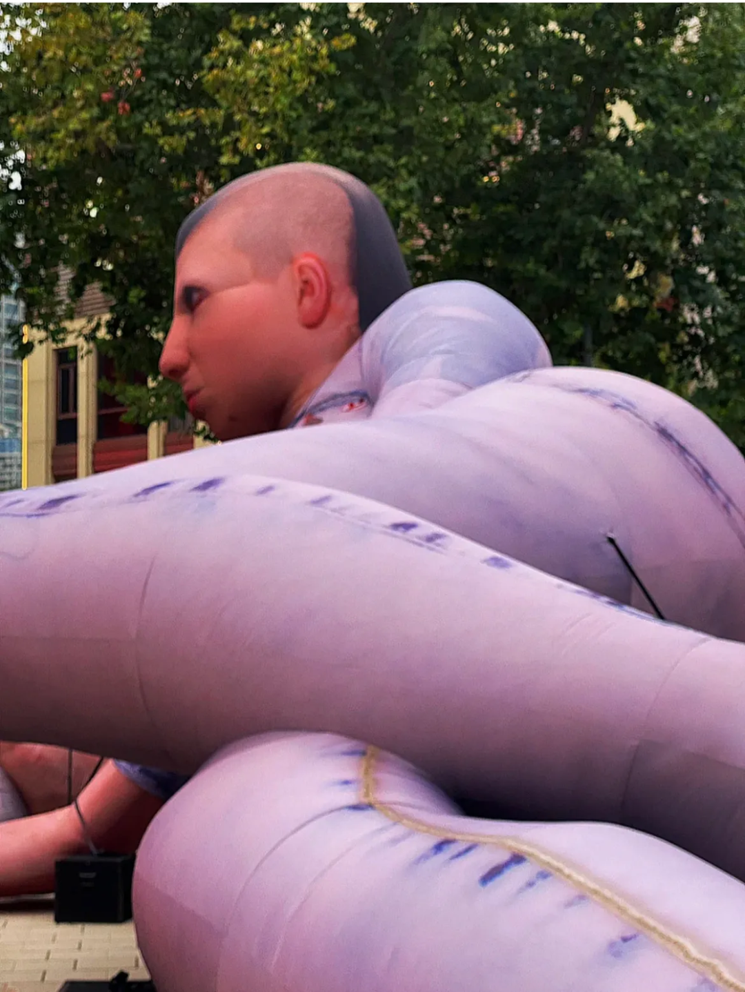 也有人说:上海惊现巨型充气人偶,有人说晚上看到像鬼一样。说实在,这真不是一般人欣赏的,这丑的,还往外面摆,而且还那么大?
