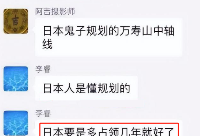 因对河南暴雨发表不当言论,李睿瞬间“走红”全网。忍无可忍的网友扒出了他之前的很多黑料,谁也没想到,李睿竟然还是一个“精日”分子,曾多次发表精日言论。2020年,李睿在一个专业群中聊“规划问题”,有群友提到万寿山和昆明湖的规划方案,有人提到:“日本鬼子规划的万寿山中轴线”。李睿赶紧说:“日本人是懂规划的”。见没人附和他的言论,李睿竟然口出狂言:“日本要是多占领几年就好了”。