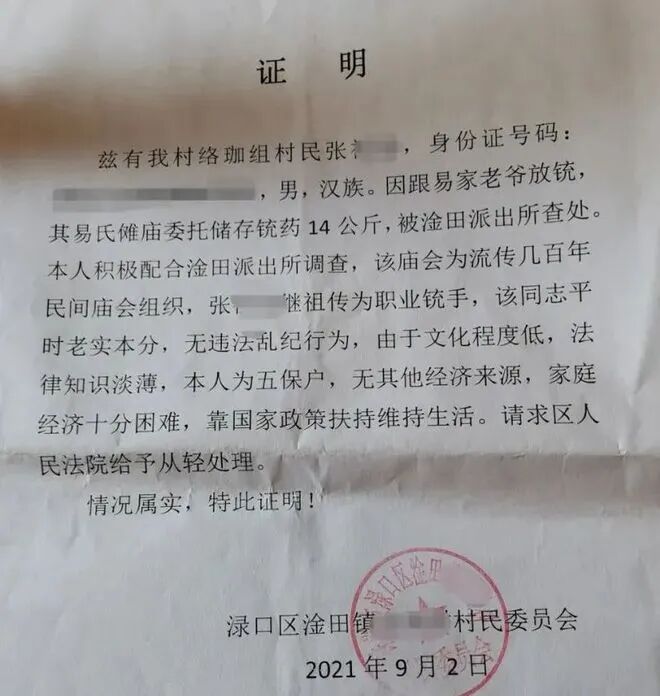 村子里的五保户张显强被判缓刑、2015年4月,湖南湘乡的成某因私自购买1000多斤黑火药,在村民举办“白喜事”时用于放铳,被指控非法储存爆炸物。2017年9月,湖南汨罗的虞某