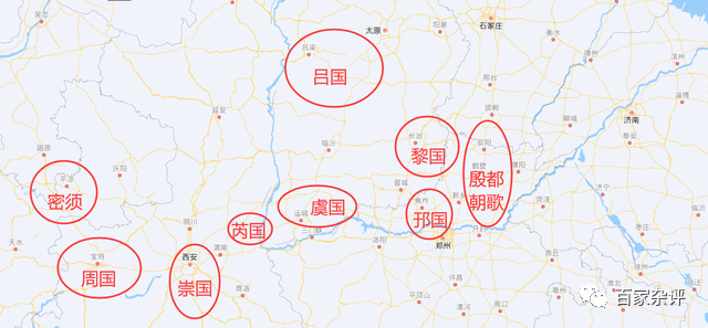 其次,通过上图清晰可见,崇国毗邻姬周,卡在姬昌东出路上,如果姬昌攻打黎国、邘国,公然背叛造反时,一旦崇国出兵,姬周必然非常难受。问题在于:如果说崇国是夏人后裔,还可以说坐观山虎斗来解释,但崇国是商朝嫡系诸侯,为何坐观姬昌公然造反,攻入商朝核心区?姬昌攻打黎邘时,又为何不担心崇国出兵?