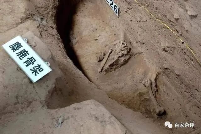 而在北斗九星遗迹上端的北极附近,考古发现了一头首向南并朝着门道的完整麋鹿骨架。由于古人认为北极是天之中心,因此该地区放置麋鹿(冬至前后脱角,其他鹿往往夏季脱角,因此古人眼里的麋鹿非同一般),显然具有很强的象征意义。