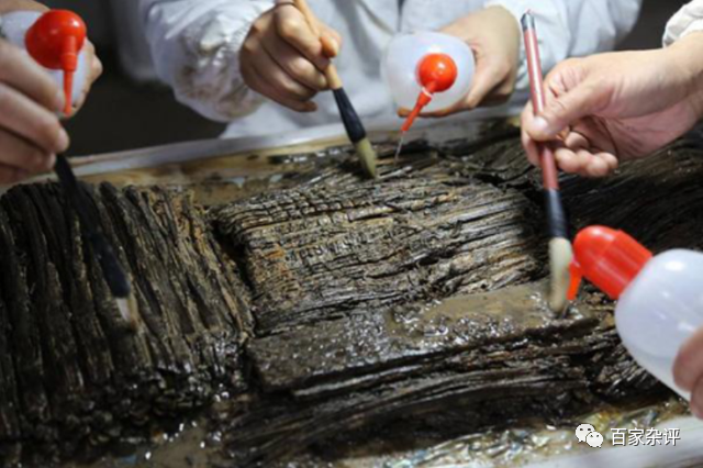 中国考古发现的竹简,基本都是战国或秦汉的,春秋时期的极其稀少,原因在于春秋竹简距今太久,基本已经腐烂了。战国时期的竹简,其中很多在出土时犹如“煮熟的面条”(见上图,这还算比较好的状态),需要非常小心的分离,甚至需要100多道程序,需要多种药水浸泡,需要数年时间等等。问题在于,难道莎草纸比竹简更耐保存?