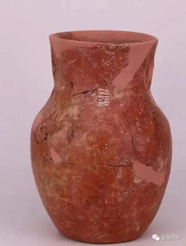 位于浙江金华义乌城西的桥头遗址,距今约8000—9000年,2012年开始挖掘,不仅出土了很多上山文化中晚期彩陶,还在彩陶上发现八卦刻符(如上图),且似六十四卦的卦象。上图红衣彩陶出土于一个单人男性墓葬中,彩陶被此人抱在怀里。
