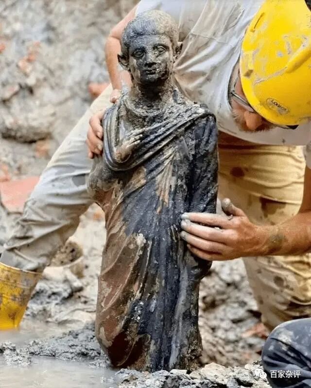 去年,意大利出土一堆神奇的文物,即24具青铜雕像(上图,其中之一)与大约5000枚金银铜币,保存完好,品种再次单一,年代可追溯到2000年前古罗马时代。