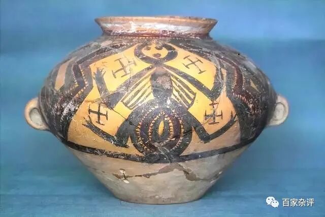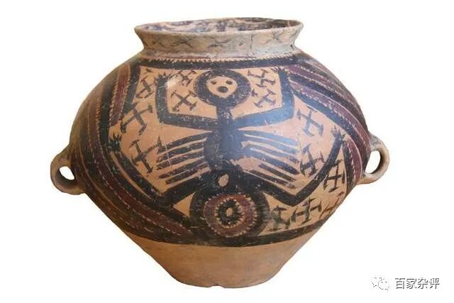 马家窑这件彩陶上,中心其实不是人物,而是一个“蛙神”化身,是一种生殖崇拜和蛙神崇拜的结合图腾。