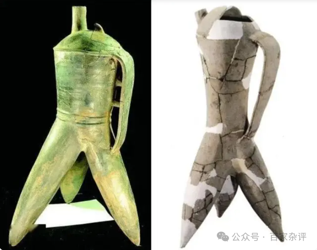 除了牙璋之外,二里头考古队队长赵海涛还发现:三星堆陶盉(见上图右,左为二里头出土)、镶嵌绿松石铜牌饰、玉戈、蜗旋状玉器等也与二里头的近乎一样。
