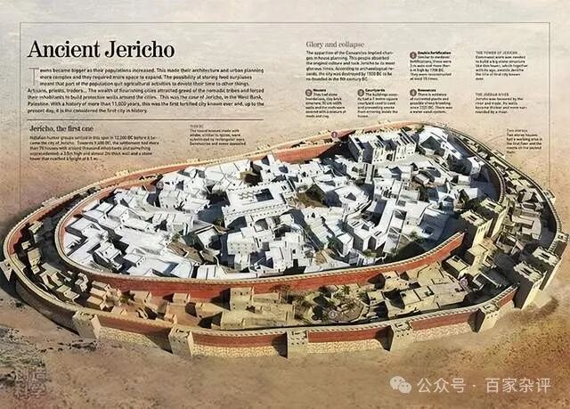 所谓“古杰里科”,又叫耶利哥城,被认为世界上最古老的城市,距今已有9000多年历史。按照西方历史叙事,距今万年时此地已经形成有组织的社区(2000-3000人口的城镇),此后居民从狩猎转向务农,形成了西方最早的农业,比如开始种植大麦、小麦等等。