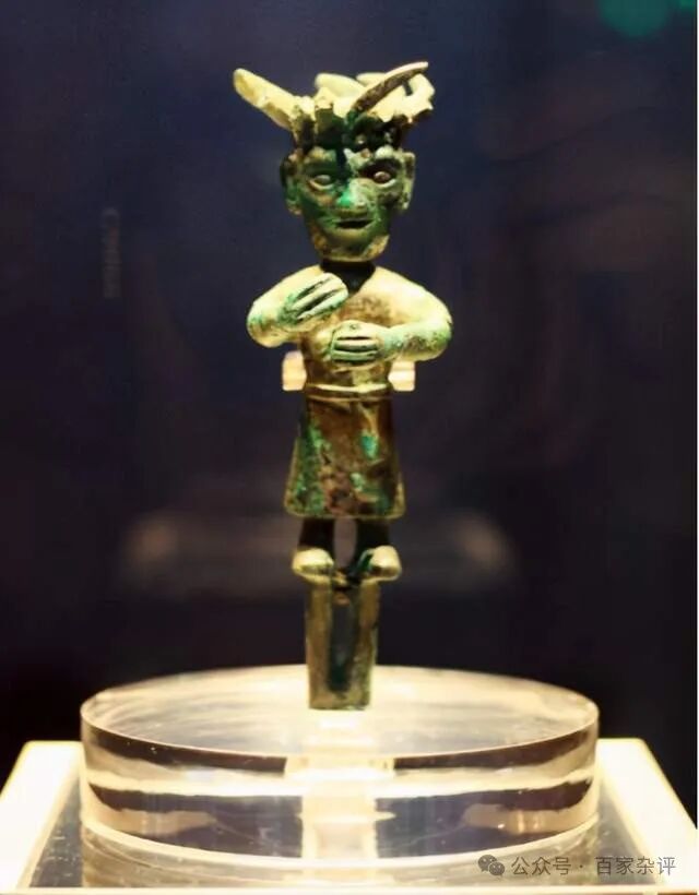 金沙遗址继承于三星堆文明,即部分三星堆百姓迁徙到了金沙遗址,在此重建了一个政权。而金沙遗址中有一些造型简陋的青铜小立人像(这应是分裂之后实力衰退的体现),但这些小立人像的发型却是辫发,而不是笄发。