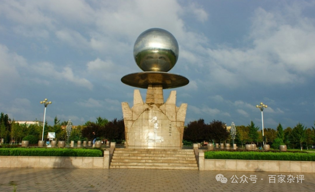 2021年,在山东烟台莱州市,考古发现“吕村遗址”,该遗址横跨大汶口文化晚期、龙山文化时代,其中也出土了“日月山”陶文符号。下图,史前“日月山”符号的雕塑。