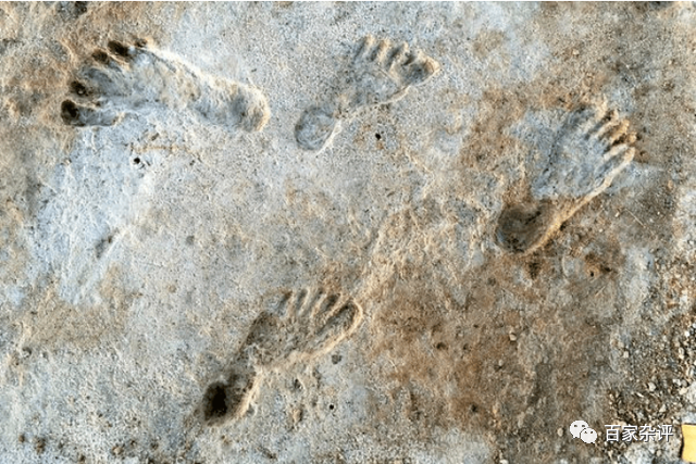 2009年,在美国新墨西哥州白沙国家公园,一个干涸的湖床上,考古发现成千上万个与动物足迹混合在一起的人类脚印(见上图),其中脚印有60个,清晰可见。