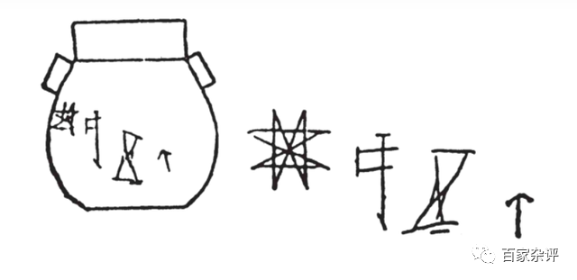 对于上述四个字符,古人到底说了什么?其实,下图中的第二、第三个字,学者已经基本确定为“戉”与“五”,但对首尾两个字的解读却大不相同。