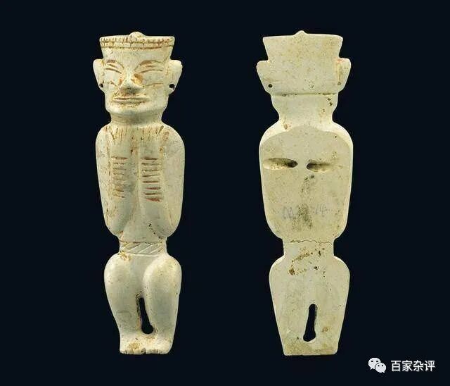 凌家滩遗址,距今5500至5300年,位于安徽马鞍山市,在阶级分化、贫富分化方面表现得尤为明显,已经进入王权的王国时代。安徽考古研究所研究员张敬国指出:凌家滩与红山文化虽然相隔千里,但很多玉器在器形上却基本都是相似的,说明两个文明有过交流。(下图,凌家滩玉人,与三星堆铜人是否似曾相识?因此,三星堆不是外来文明)
