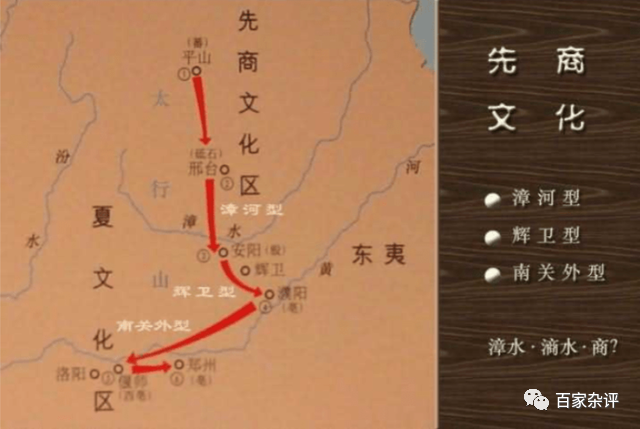 在河北石家庄与河南濮阳之间,考古发现“漳河型先商文化遗址”,其代表是位于邯郸市的北羊井遗址。在河南濮阳,发现横跨龙山时代、夏商周的高城遗址。在濮阳与郑州之间,考古又发现“辉卫型先商文化遗址”。