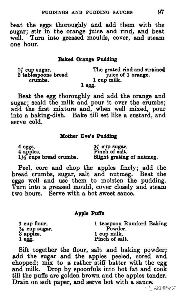 下面是 1908 年食谱书中“布丁”部分的一页: