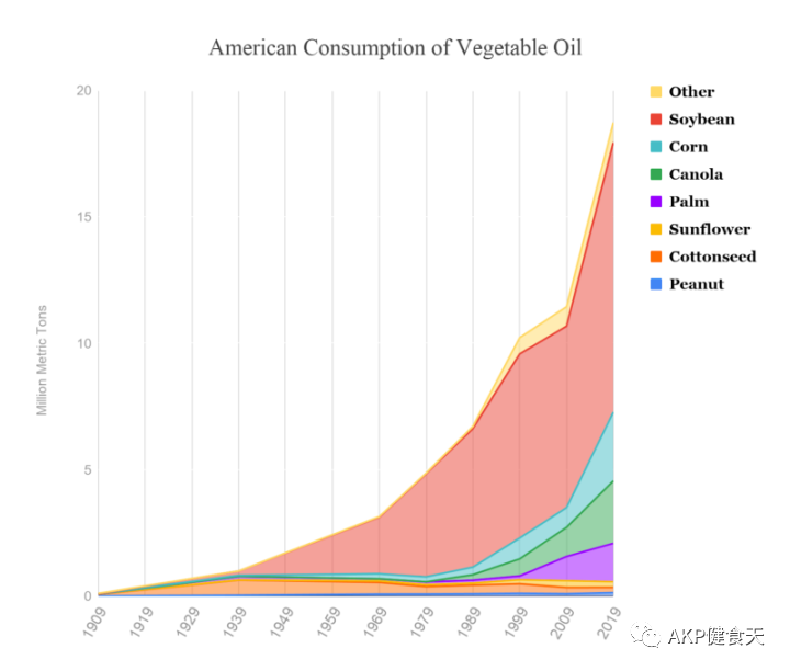 以下是过去 100 年美国普通植物油消费量增长的可视化: