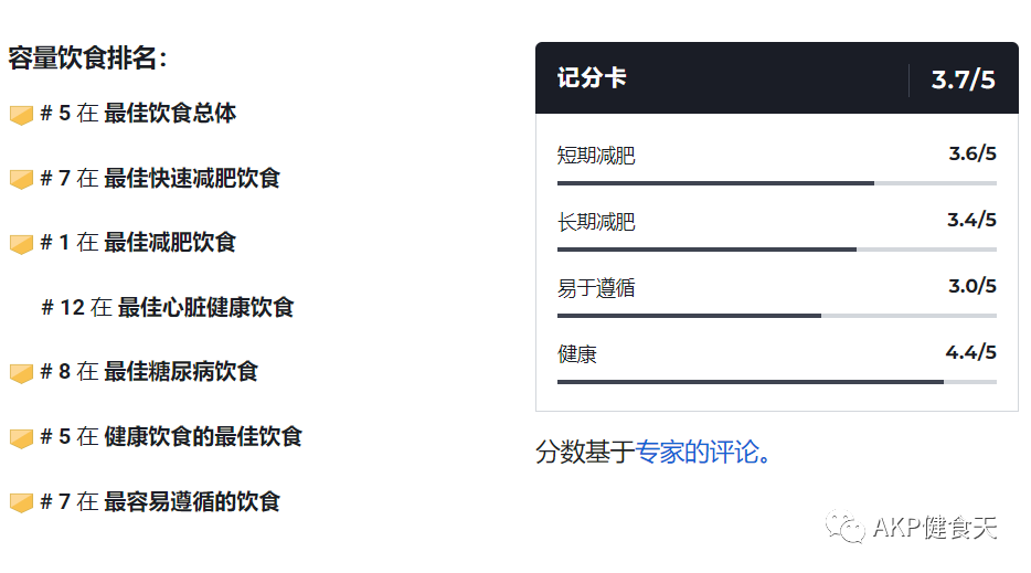 容量饮食在USN最佳饮食中排名第5位。根据一组健康专家的意见,对40 种饮食进行了评估。