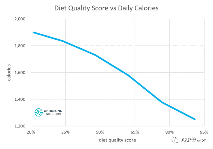 下图说明了随着营养密度的提高,人们倾向于少吃。随着优化者增加饮食的营养密度,吃得更少。