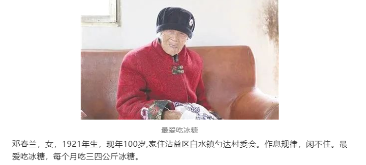 奇:每月吃糖6斤多 百岁老太没病痛