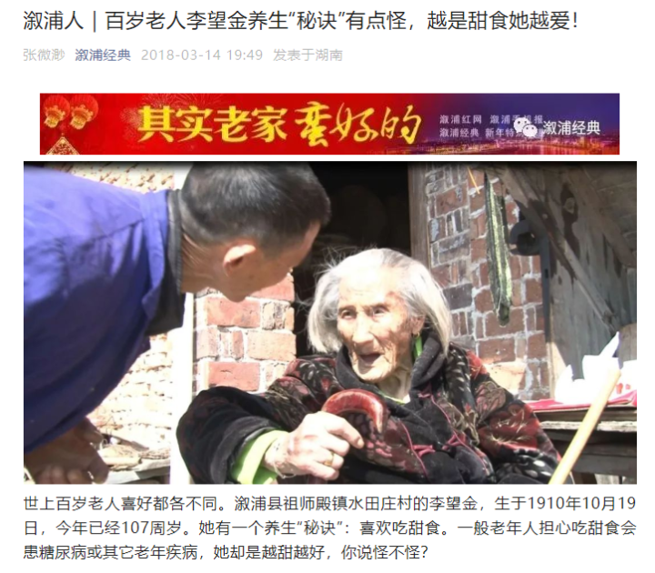 溆浦人|百岁老人李望金养生“秘诀”有点怪,越是甜食她越爱!