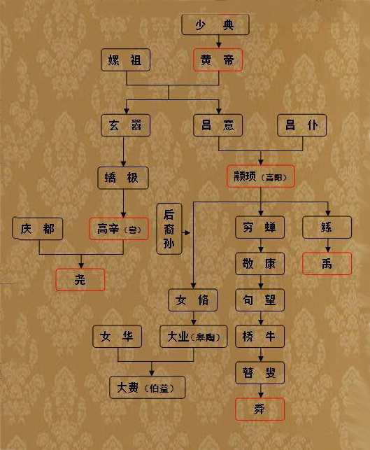 2、帝喾、帝尧的世系:黄帝-玄嚣(青阳)-蟜极-帝喾(高辛)-帝尧