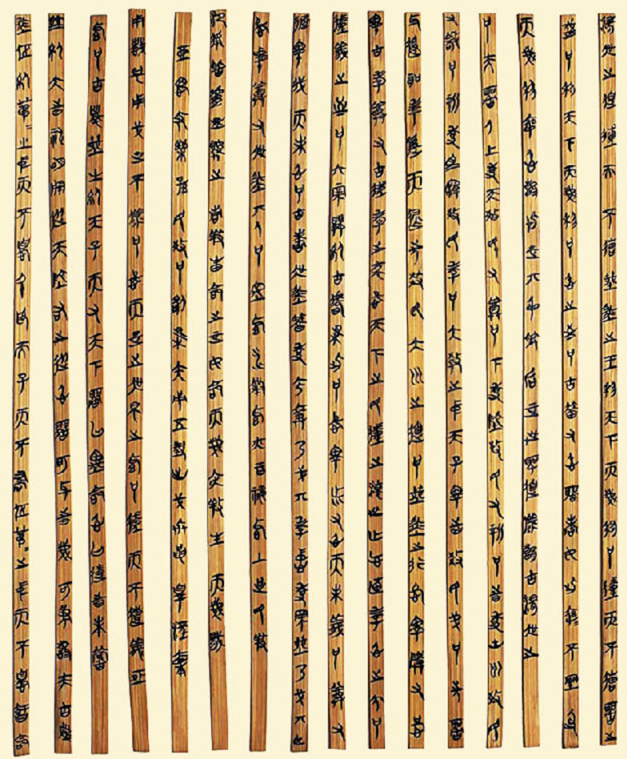 见烧得残缺不全的竹片上面有字,曲曲弯弯状如蝌蚪,甚是蹊跷,公差便找来几辆牛车,划拉划拉当做物证,全运回了官府。