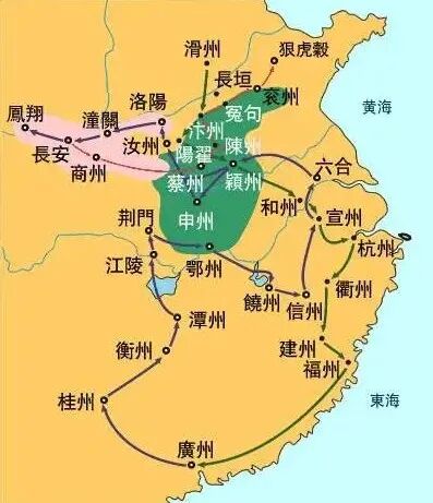 黄巢起义军作战范围横跨大江南北,历经今天山东、河南、安徽、浙江、江西、福建、广东、广西、湖南、湖北、陕西等十一个省市。