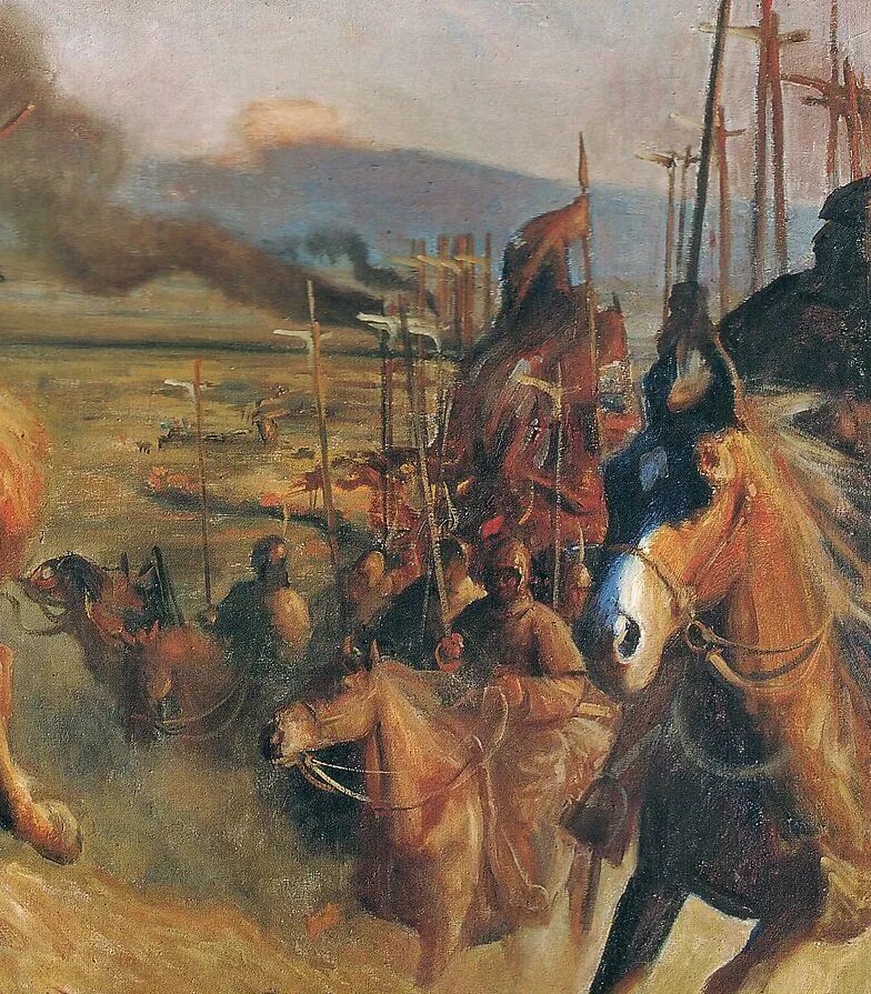 城楼上的匈奴人齐声高叫:“来决一死战吧!”