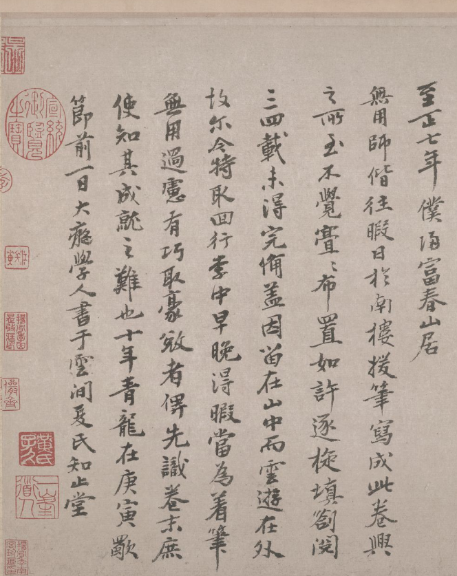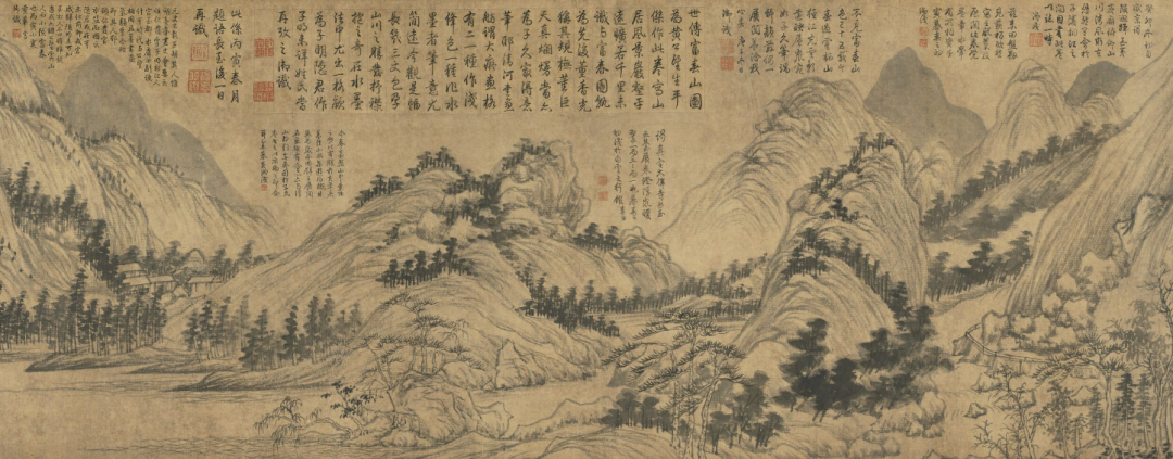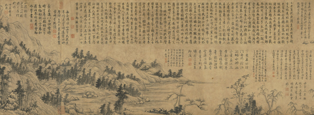 他爱不释手,时时观看,在卷上写了很多自己的心得,认为这就是黄公望的《富春山居图》原作。