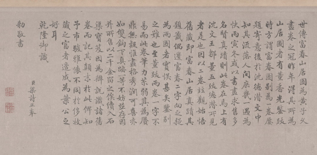 乾隆是不会说自己看走眼的,于是断言《富春山居图》的《无用师卷》是伪作,还请沈德潜和梁诗正等大臣一起来评定真伪。