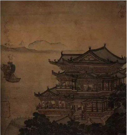 仇英所绘《天籁阁》,描绘了明代滕王阁的样貌