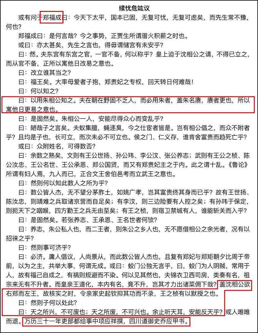 内阁大学士朱赓在家门口发现了一份题为“国本攸关”的揭帖,小标题为——“续忧危竑议”。