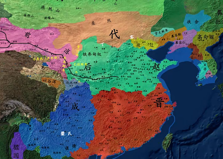 放眼天下,南方有江东东晋和巴蜀成汉,成汉偏安一隅,守着自己巴蜀一亩三分地,和后赵还是盟国;东晋内部勾心斗角,一直喊着北伐中原,实际雷声大,雨点小,不值一提。