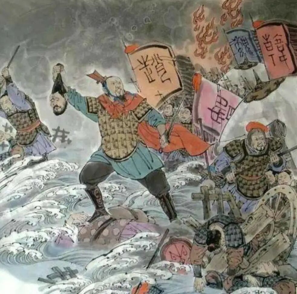 智家的军队现在全成了鱼虾,在水中扑腾,并遭受三家军队的屠戮。