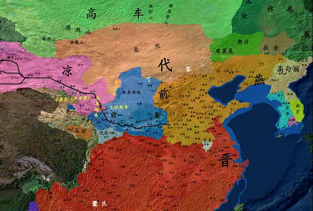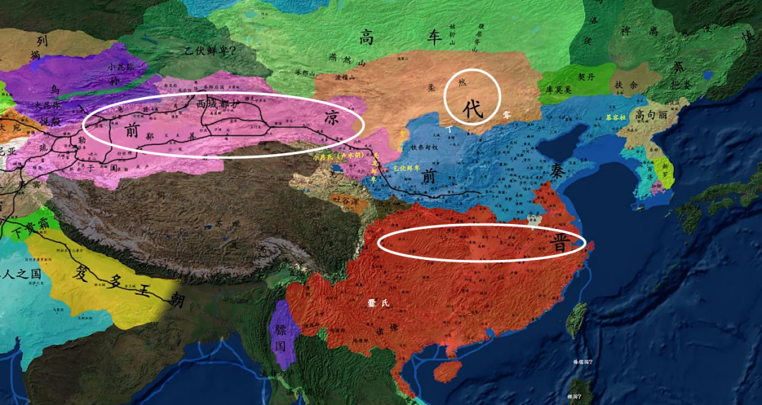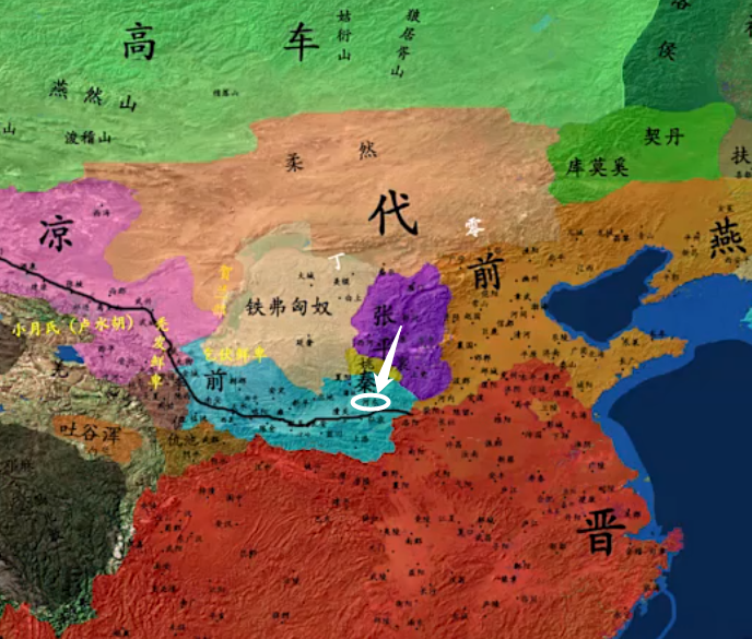 当时,西北还有前凉张氏,北方有代国拓跋鲜卑,南边有东晋。