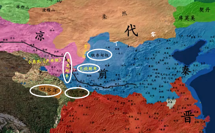 除此之外,还有杨氐仇池、铁弗匈奴、秃发鲜卑、乞伏鲜卑、慕容吐谷浑等一些割据势力。