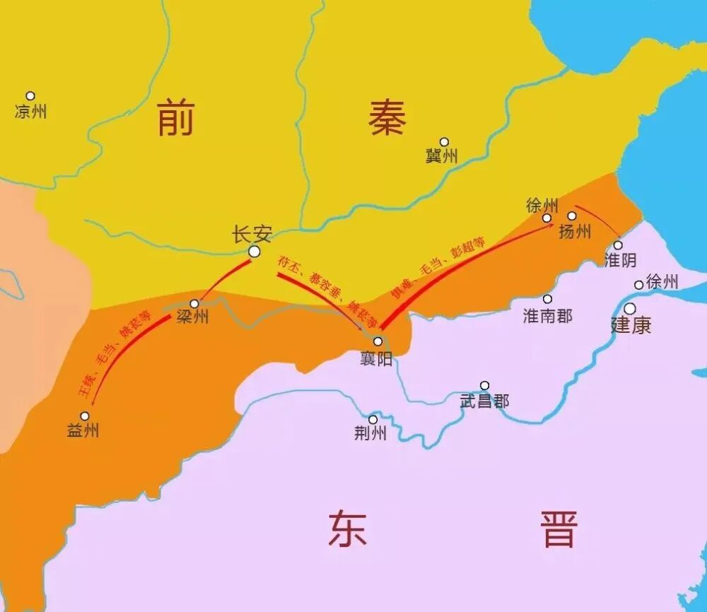 前秦拿下大块地盘,占据了重镇襄阳、彭城;
