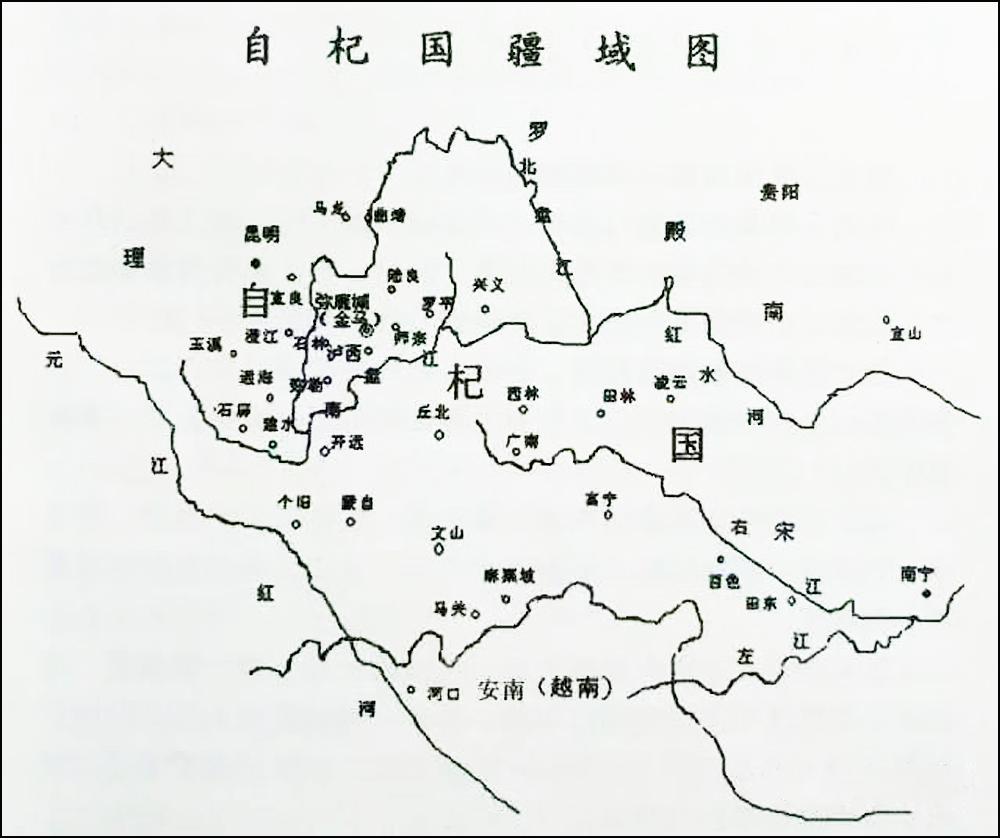 鼎盛时,自杞国其疆域北至曲靖,南达红河,西抵昆明,东到广西红水河,横跨云南、贵州、广西。