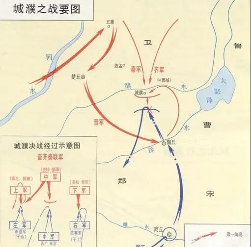简单说,晋国此次所制定的作战计划是这样的:避开楚国锋芒,也就是不直接救宋,而是先讨伐曹、卫两国。