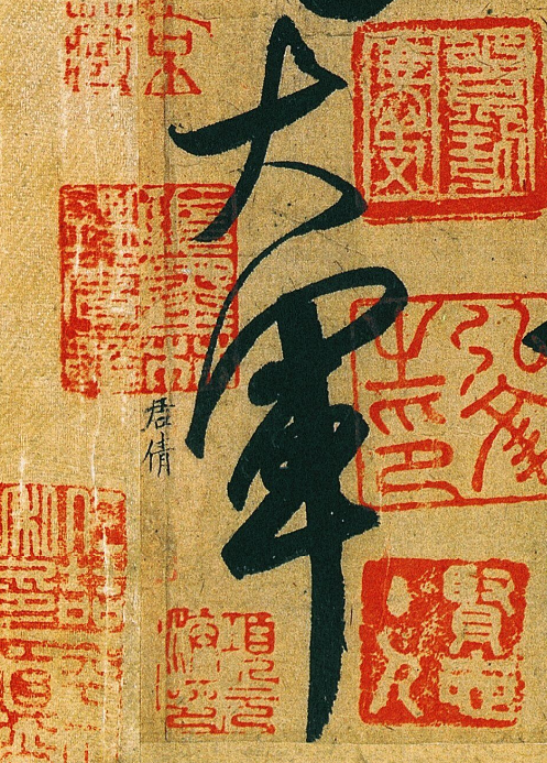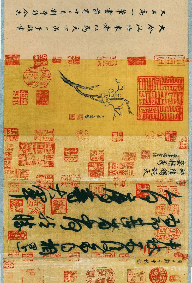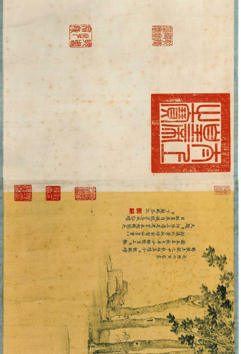 《中秋帖》光乾隆一个人的印章盖了有八十多处,还另外接了一米多,用以题咏并作画于其上。