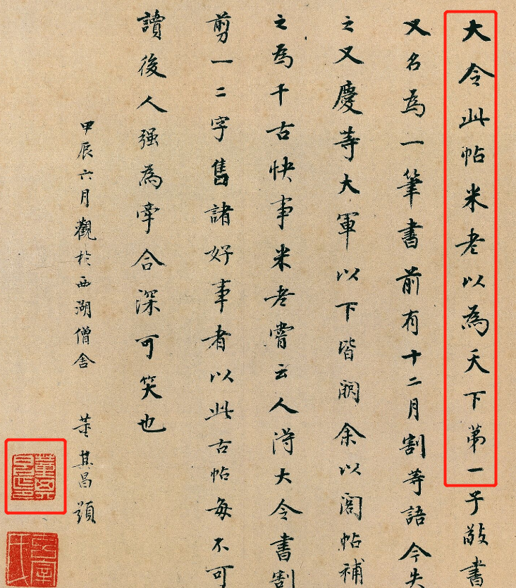 董其昌借米芾之口,盛赞《中秋帖》为天下书帖之首。