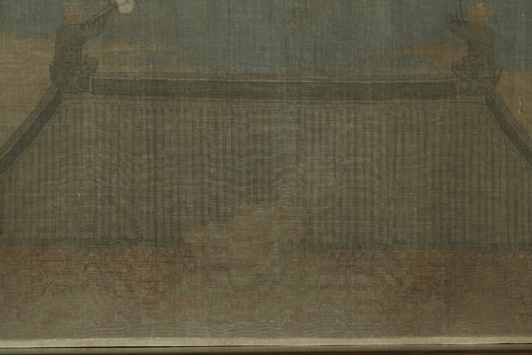 虽然已经过了一千年的时间,这片蓝已经氧化变暗,但仍能够看出蓝色并非均匀平涂,而是按照实际天空叠加上烟雾缭绕的效果,渲染出的深浅不一、富有变化的蓝。