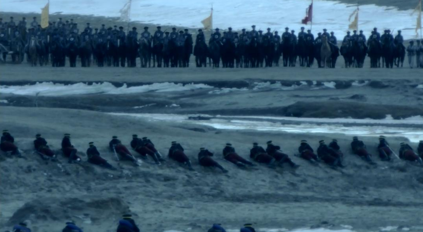 日本电视剧《坂上之云》中日军遭遇清军骑兵的场景