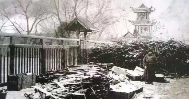 俄军占领齐齐哈尔黑龙江将军府照片,地上堆积的全是缴获的清军武器