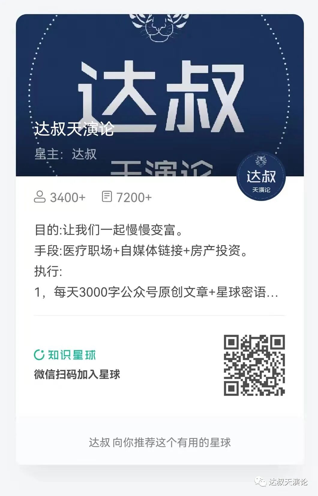 在知识星球内,医生、律师、医疗从业者、房产、教师、投资人等,数千位专心赚钱的人,等你来链接。